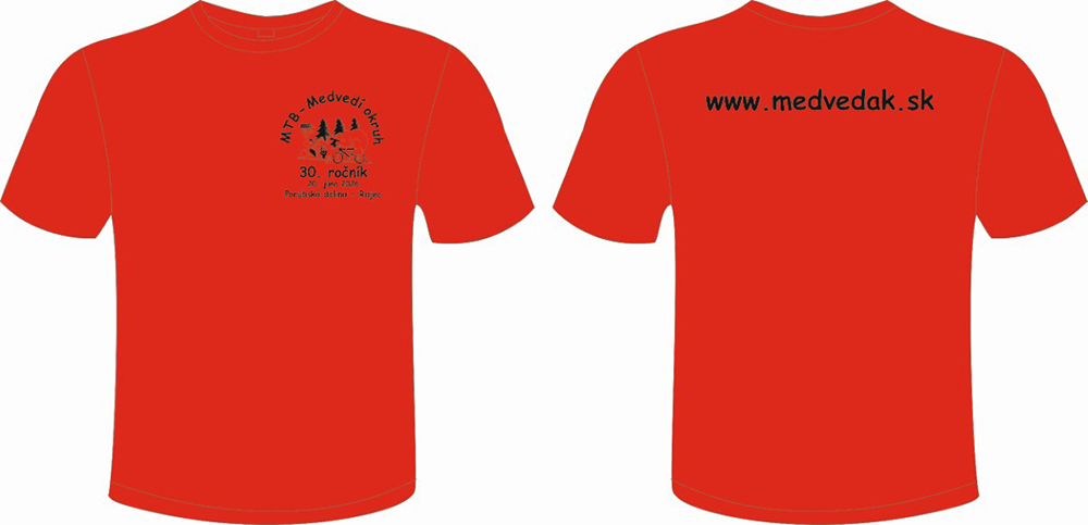 1x tričko limitovaná edícia pre prvých 100 pretekárov prihlásených so zaplateným štartovným (treba uviesť veľkosť S-M-L- XL-2XL ) skôr prihlásení pretekári s uhradeným štartovným,majú väčšiu šancu dostať svoju požadovanú veľkosť,nakoľko trička sú v omedzenom množstve pre jednotlivé veľkosti /S-M-L-XL-2XL/.
